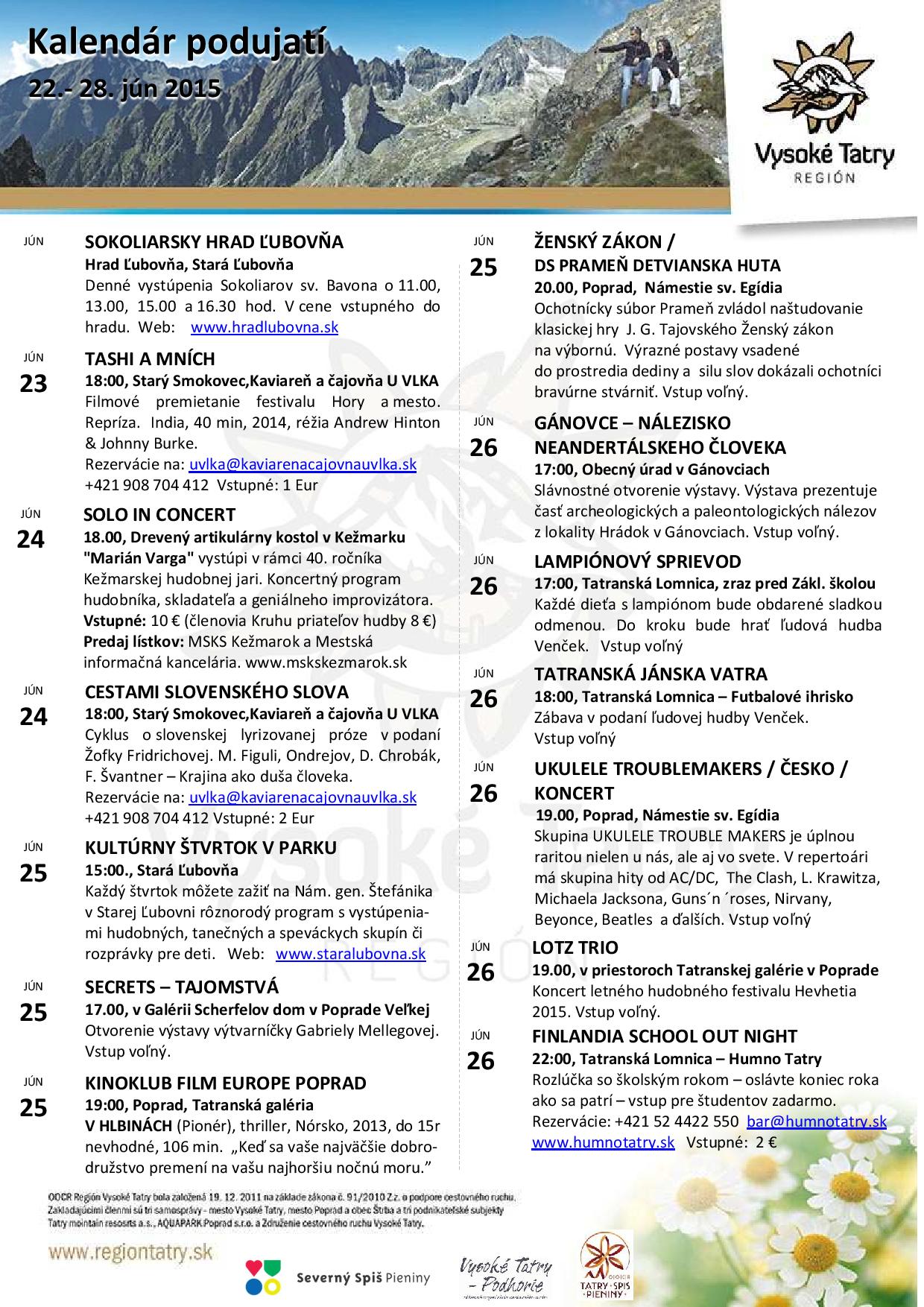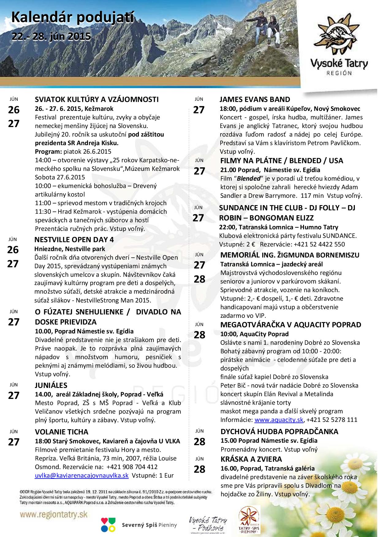 NezaradenéZáver júna v Tatrách a okolí Posted on 22. júna 201530. januára 2018 by slnecnydom slnecnydom Júnové podujatia AQUACITY POPRAD 28. júna – megaotváračka