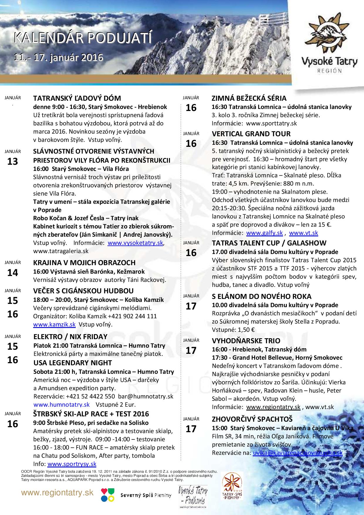NezaradenéKalendár podujatí 11. – 17. 1. 2016 Posted on 13. januára 201630. januára 2018 by slnecnydom slnecnydom Tatry na začiatku januára 2016 Newsletter 16. – 22. 2. 2015