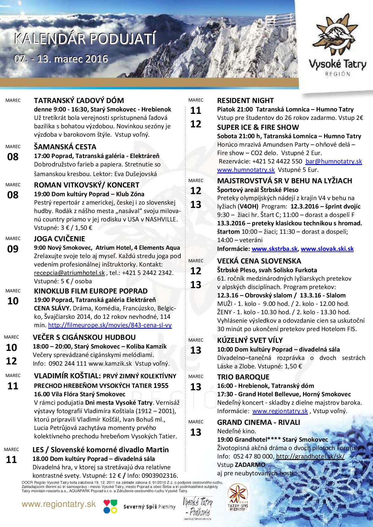 NezaradenéNewsletter 07. – 13. 3. 2016 Posted on 8. marca 201630. januára 2018 by slnecnydom slnecnydom Vynálezy a objavy v OC Forum Kalendár podujatí Regiónu Vysoké Tatry 14.-20.03.2016