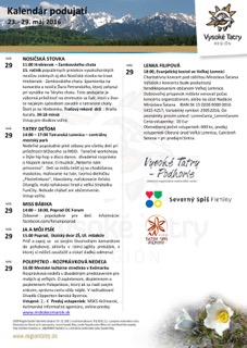 Newsletter – kalendár podujatí Regiónu Vysoké Tatry 16.- 22.05.2016