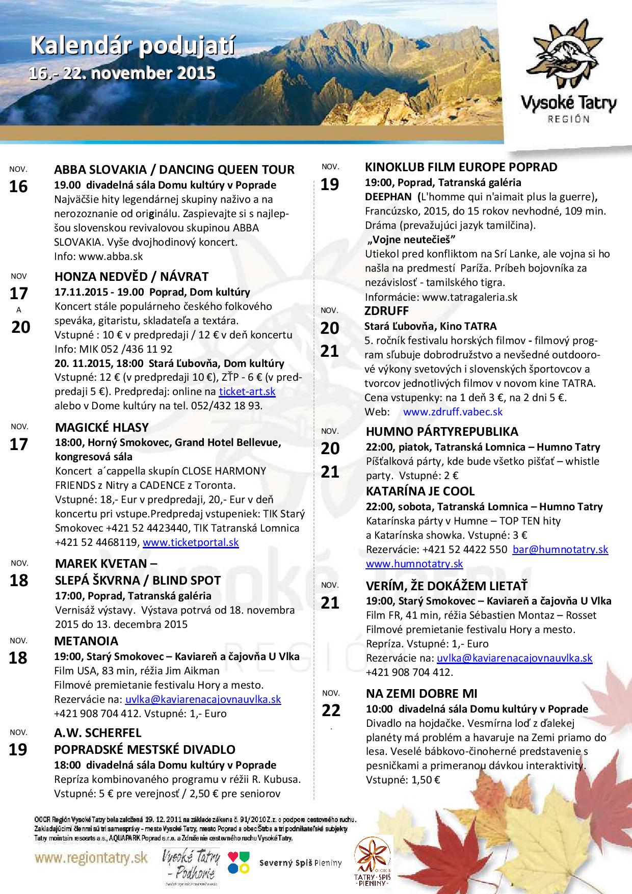 NezaradenéNewsletter Tatry – 16. 11. – 22. 11. Posted on 17. novembra 201530. januára 2018 by slnecnydom slnecnydom Newsletter – začiatok novembra 2015 Tatranské svahy sa už naplno zasnežujú