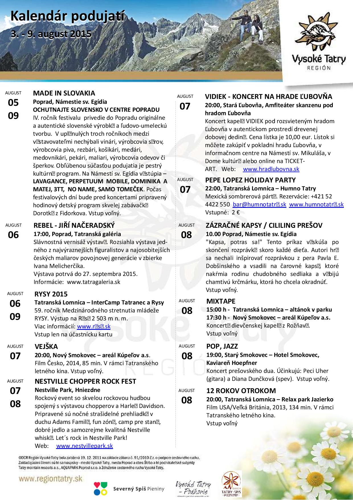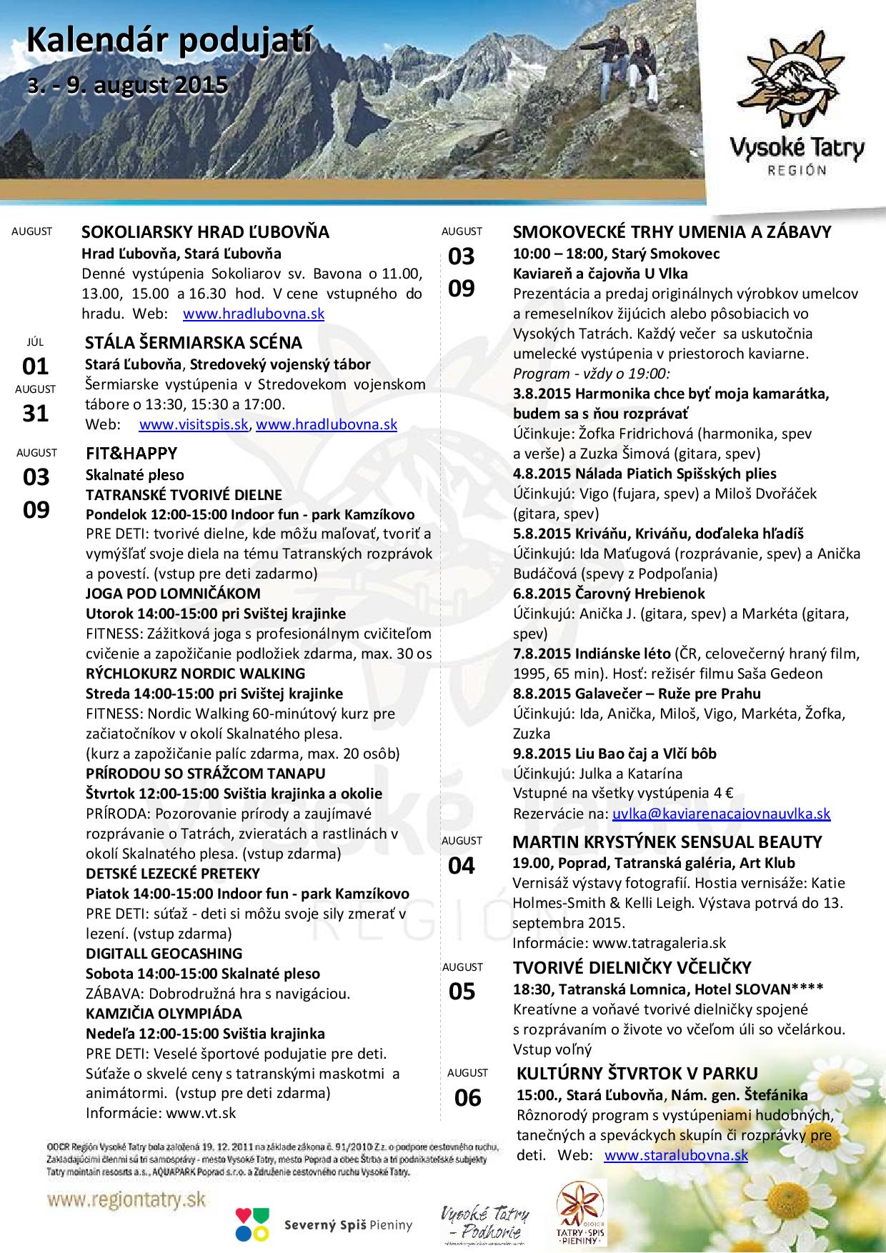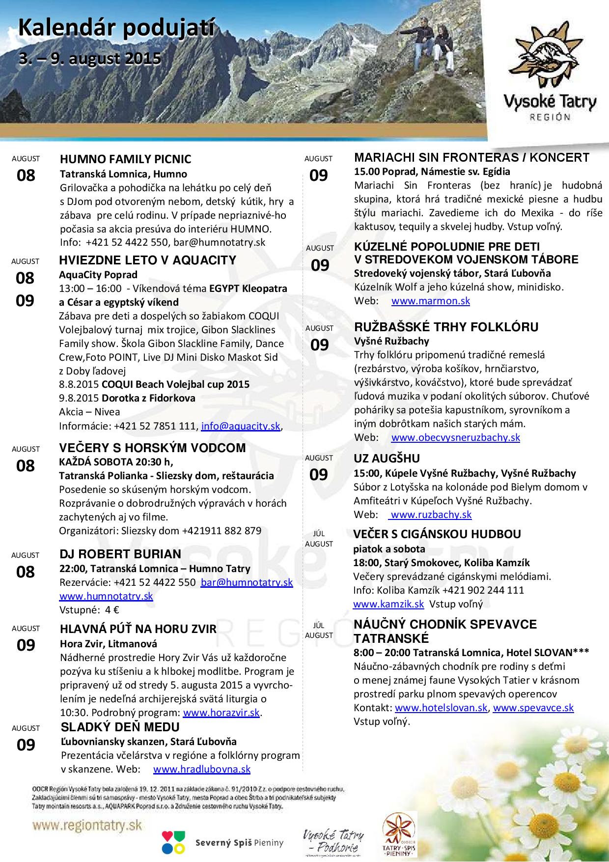 Kalendár podujatí 10. – 16. august
