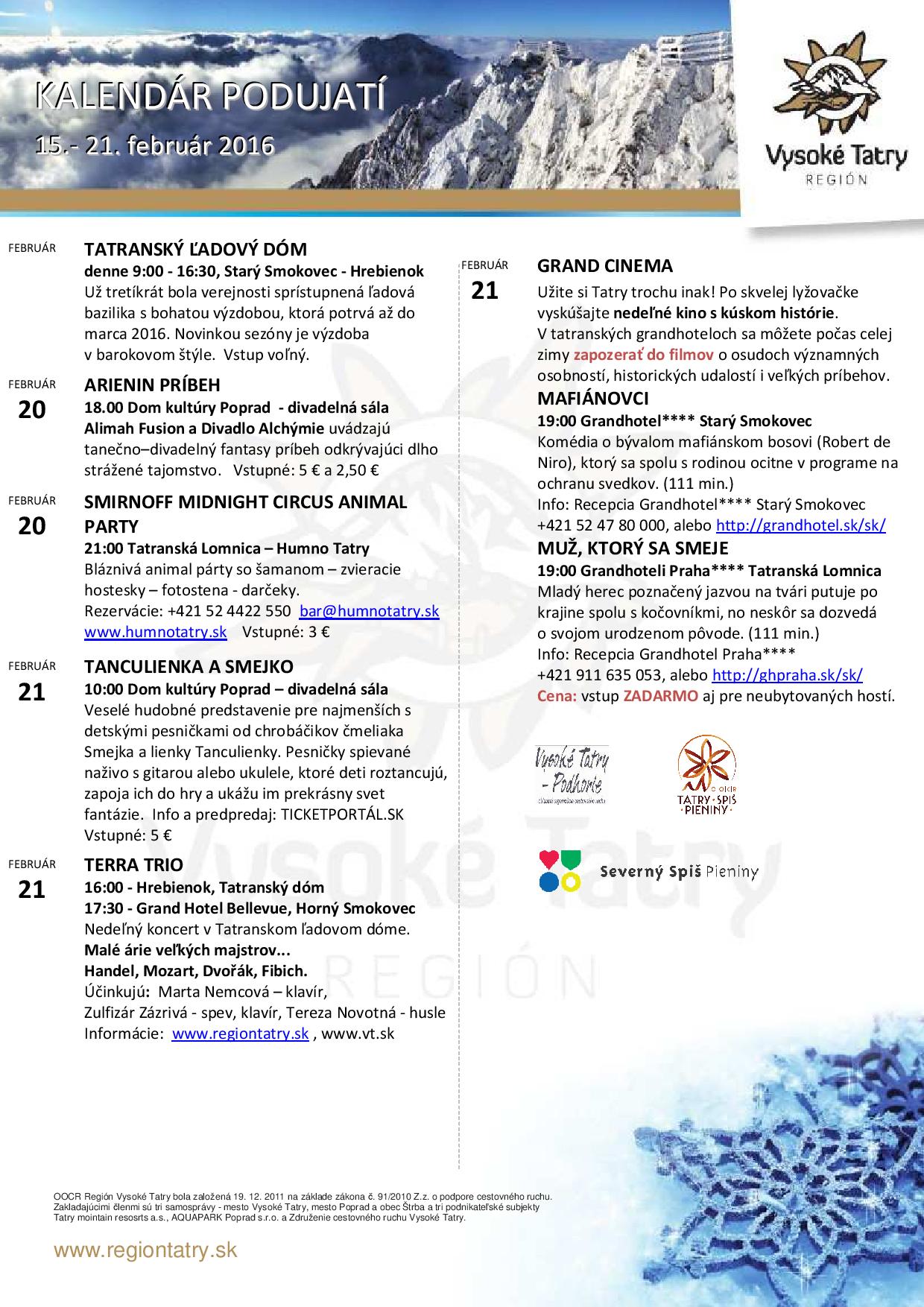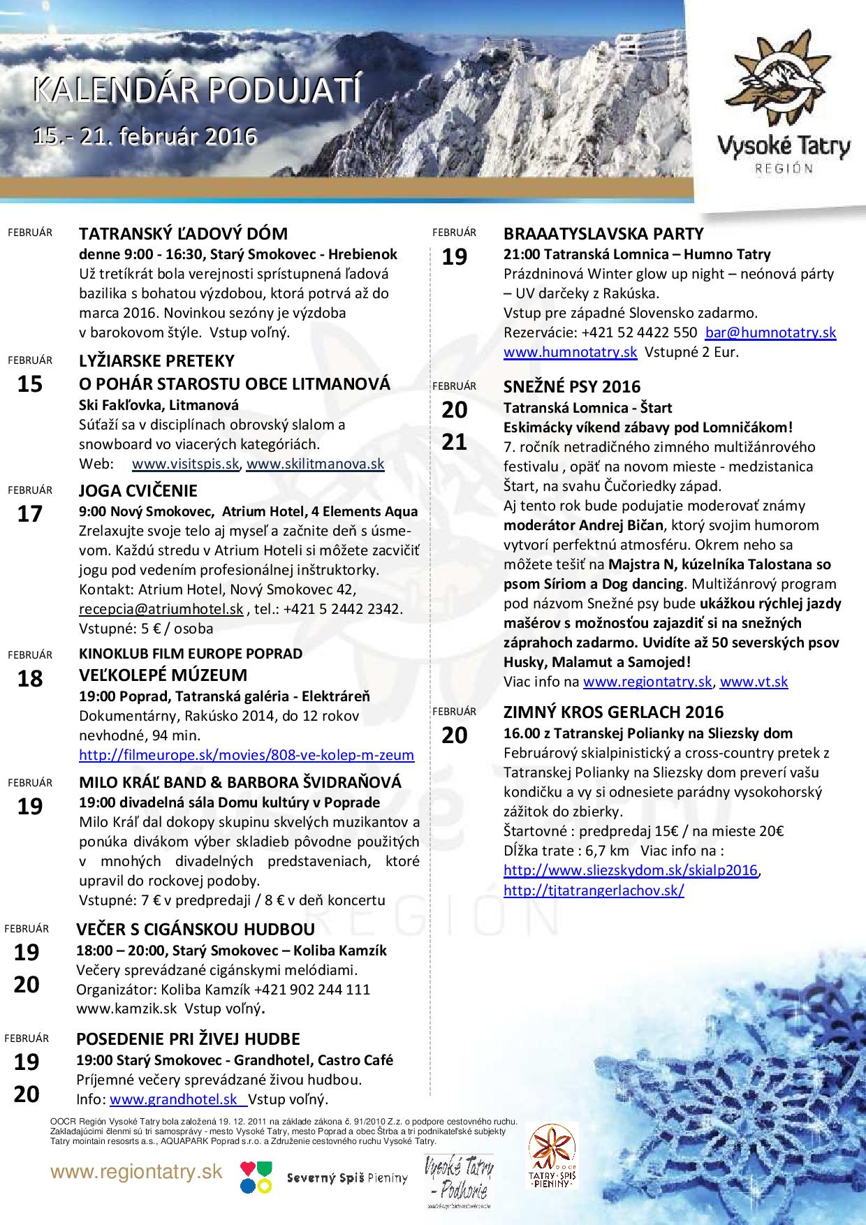 NezaradenéPodujatia v Tatrách od 16. do 22. 2. 2016 Posted on 16. februára 201630. januára 2018 by slnecnydom slnecnydom Textil art of today v Elektrárni TG Snežné psy v Tatranskej Lomnici